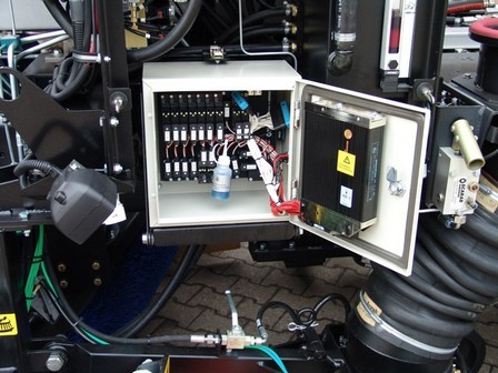 Neben den leicht verständlichen Bedienelementen bietet das Scarab CANbus System der 3. Generation den Vorteil der Störunempfindlichkeit. Zum Einsatz kommt Technik des deutschen Industrie-Elektronikherstellers IFM. Statt zahllos vieler Kabel quer durch die Kehrmaschine in das Fahrerhaus zu verlegen wo dann komplizierte Schaltungen die Steuerung übernehmen, wird beim CANbus System ein Controller nah an den jeweiligen Magnetventilen verbaut. Von dort aus führt nur noch ein Kabel zur Haupteinheit. Die Schaltungsintiligenz wird komplett per Software umgesetzt. So sind Fehler wie defekte Kabel schnell gefunden und behoben.